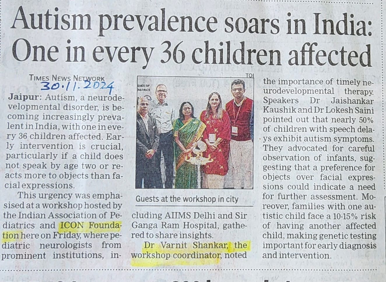 Dr. Varnit Shanker, Chief of ICON Foundation, addressed the gathering, emphasizing the foundation’s commitment to early diagnosis and care for children with autism.
